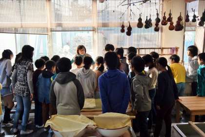 6年生が、山崎小学校伝統工芸室で卒業証書を作ってきました。まず、校章の透かしが入ったパルプの紙を作り、紙を丈夫にするために和紙を重ね合わせます。実際に紙すきの原料を見て「これが卒業証書になるんだ!」と驚きの声があがりました。
