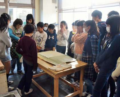 紙すきに大切なことは「気持ちを込めること!」と教えていただき、真剣な様子で紙すきに取り組んでいました。