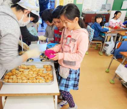 きな粉もち、磯辺もちの2種類を取り分けていただき、すぐに教室でいただきました!