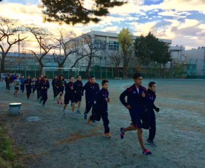 世田谷子ども駅伝に向けての朝練習9回目です。今日はインターバルトレーニングをして、スピードと持久力を高めました。今後も練習を重ね、大会に向けて取り組んでいきます。