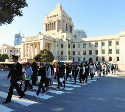 今日はさわやかな晴天の下、6年生の社会科見学で、国会議事堂(参議院)、昭和館、江戸東京博物館見学です。東京の学校だからこその得難い経験を、今後の学習に生かしてくれることを楽しみにしています。