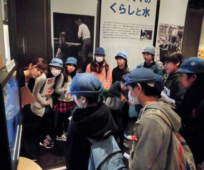 昭和館は、日本の国立博物館で、戦中、戦後の国民生活を中心とした資料を展示しています。当時の衣服を着たり帽子をかぶることができました。井戸も体験です!