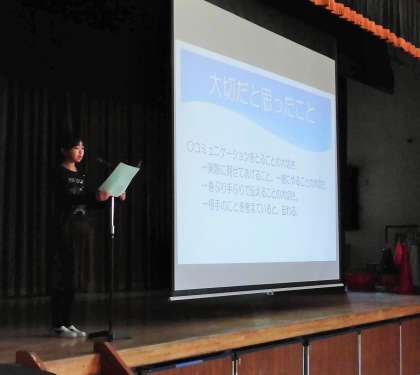 現地の学校での授業を体験したり折り紙で鶴の折り方を教えたりして交流を深めてきたそうです。言葉は、ほとんどわからなくても、身振りや手振りで気持ちが通じ合える喜びを感じてきたということです。この貴重な経験を、これからの生活に生かしたいという気持ちがひしひしと感じられました。国際的な視野を広めた今後の活躍が楽しみです。