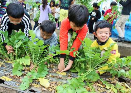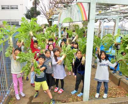 今日の大根の収穫は3年生です。土に触れ、収穫の喜びに触れ、売り物とは違った土にまみれた大根を手にした子どもたち。このような経験ができるのは、保護者の方、地域の方々のご協力があってこそです。本当にありがとうございました。