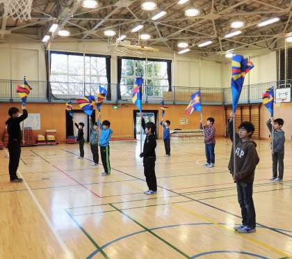 砧小学校伝統の一つである、鼓笛が今週からスタートしています。朝7時45分から音楽の遠藤先生、そして担任の先生から、心構えからの指導をいただきながら、真剣に取り組んでいます。今日はメジャーとフラッグの練習でしたが、子どもたちは、立ち姿勢やメジャーバトン、フラッグの扱い方を中心に集中して練習に取り組んでいました。