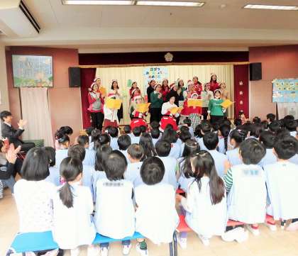 今月は特別に、保護者の方々の同好会「うたう会」の皆さんが、素敵な歌を披露してくださいました。子どもたちも大喜びでした。「うたう会」の皆さん、素晴らしい歌声をありがとうございました。