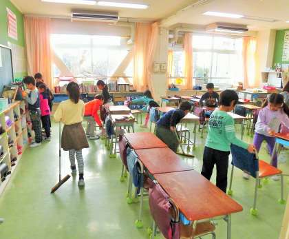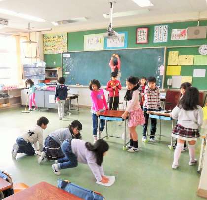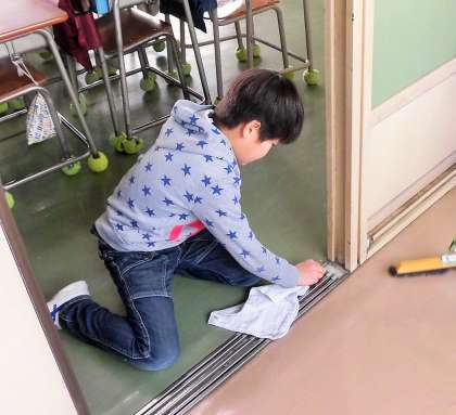 今年度の重点施策の一つとしての実践ですが、古い校舎をいつまでもピカピカにして使いたいと思っています。2年生のあるクラスは、担任の先生がいなくても教室内はシーンとしていておしゃべりがありません。見ていてとっても気持ちがよくなりました!