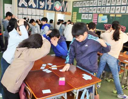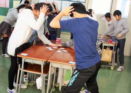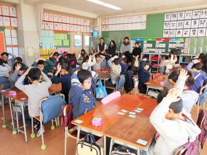 今日は、5年生の百人一首大会です。子どもたちは、この日のために練習を重ねてきました。上の句下の句を暗記している子が多く、先生の読みに合わせて子どもたちの目は真剣そのものです。教室は熱気に包まれていました。