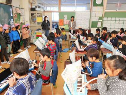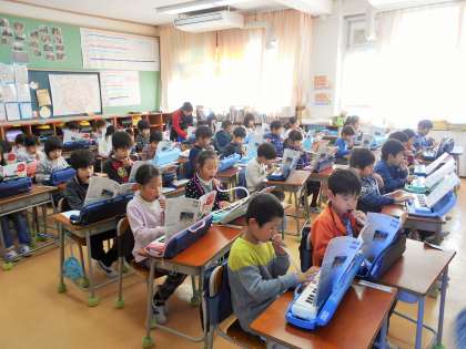 今日は小学校入学を控える、近隣保育園の園児の皆さんが来校し見学をしていきました。小学校がどのようなところか、どのように勉強しているかを知りたかったようです。どのクラスも温かく迎えてくれましたが、特に1年生の教室では特別大サービスで、鍵盤ハーモニカでの「こいぬのマーチ」を演奏してくれたので園児の皆さんも大喜びでした。