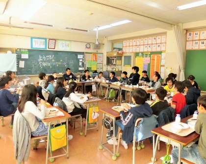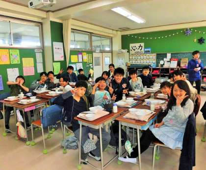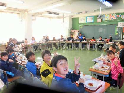 給食を一緒に食べながら長距離走にかける思いなどの話を聞いたり、質問に答えてもらったりしました。
