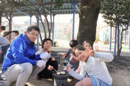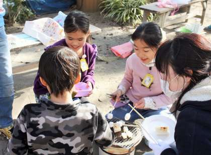 3年生は社会科の学習で「昔の人々の生活」を学んでいます。昨日は、多くの保護者の皆さんにもご協力をいただき、七輪体験をしました。炭で火を起こし、餅やマシュマロ、干し芋などを焼く貴重な体験をしました。上手に火起こしし、ふっくら焼くことができました。