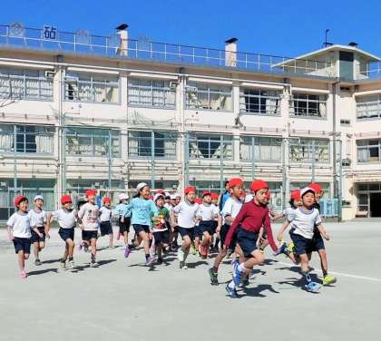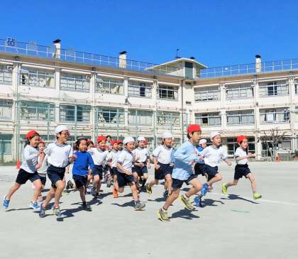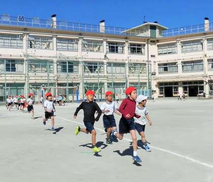 今日は1年生が、持久走大会に向けての練習をしました。朝ランニングの成果発表として、自分のペースでリズムよく走ることをめあてとしています。しかしながら、1周目から全力に近いペースで走っている姿はとっても素敵です。