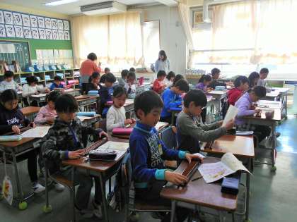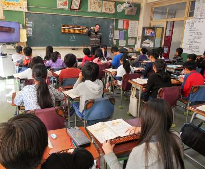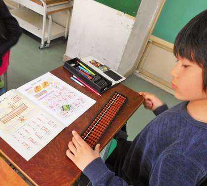 今日は3年生のそろばん教室です。外部講師として、大ベテランの「そろばん名人」をお招きして、子どもたちもますますやる気になっています。普段なじみのないそろばんを手に、ちょっと興奮気味の3年生でした!