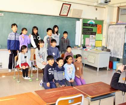 なかよし班の記念写真撮影がありました。砧小学校の特色ある活動の一つとして、この1年間、一つの班に1年生から6年生までが入って縦割りの集団で遊んだり、給食を食べたりしてきました。子どもたちの思いやりの気持ちをさらに向上させるための活動ですが、次回が最終回になります。