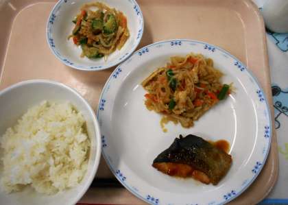 魚は苦手な子が多いのですが、今日は鮭を使い、すりおろしの玉ねぎが入ったステーキソースをかけたものだったので、比較的よく食べてくれていました。