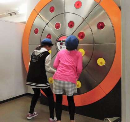 子どもたちに、特に人気だったのは、宇宙飛行士に必要な様々な力を測るコーナーです。