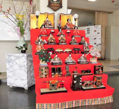 正門からすぐの昇降口には、2月の上旬から、ひな祭りの準備がされました。明日のひな祭りは女の子のための行事。健やかな成長と幸せを願いながらお祝いをします。
