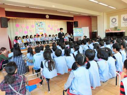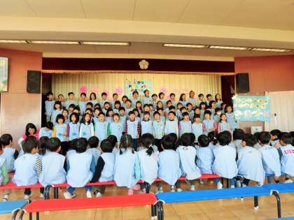 今日は砧幼稚園3・4月のお誕生日会です。私からのレイの首飾り、先生からのカード、星組さんから歌のプレゼントでお祝いをしました。花組さんの司会も立派でした。まだまだ寒い日が続いていますが、子どもたちは元気いっぱいです!