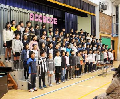 保護者の方々への感謝の気持ちの呼びかけと合唱、スライドショー、最後には保護者の皆様による合唱がありました。