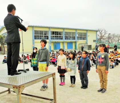 今日の全校朝会では、3学期のめあての達成状況を振り返る話をしました。学校に登校する日もあと2週間です。しっかりと、めあて、目標を意識して頑張ってほしいと思っています。