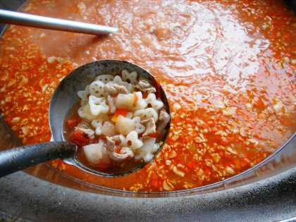 今日の給食の汁ものは、<ミネストローネ>です。星型とハート型の米粉マカロニを使用しましたが、もちもちとした食感とかわいい形がとても好評でした。