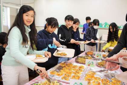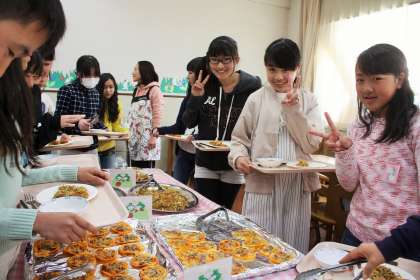 6年生の特別給食がありました。バイキング形式で、カレー味の唐揚げ、イカのかりんと揚げ、ポテトフライ、焼きおにぎり、焼きそば、ピザ、もやしのナムル、スープ、フルーツの盛り合わせ、飲み物と豪華メニューです。給食調理員さんたちの気持ちが伝わってきて嬉しくなりました。6年生も歓声をあげて大喜びでした。