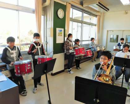 毎朝7時45分から行ってきた、鼓笛の朝練習は5年生最終日を迎えました。音楽の遠藤先生と担任の先生のご指導のもと、音がだんだんと揃ってきています。