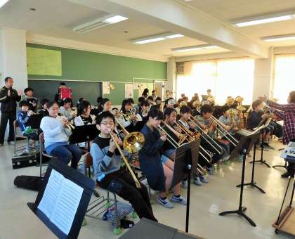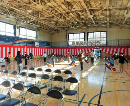 体育館では、メジャーとフラッグが音楽に合わせて集中して取り組んでいました。保護者の皆様方には、これまでの朝練習へのご理解に感謝申し上げます。