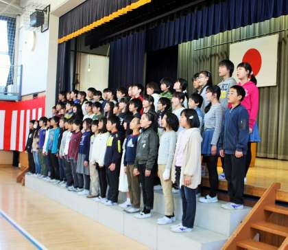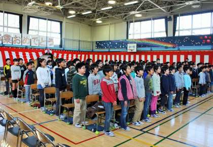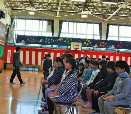 卒業式は、10時00分開式です。保護者の皆様は、9時15分受付です。体育館へお願いいたします。ご来賓の皆様は9時30分までに控室にお集まりください。よろしくお願いいたします。