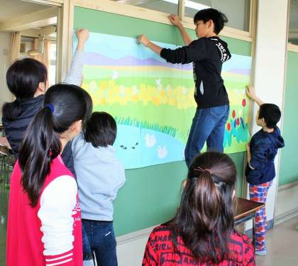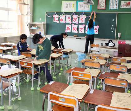 今日は、新しい6年生が登校して、新学期の準備をしました。特に、新入学の1年生のお教室や入学式の準備などをしました。