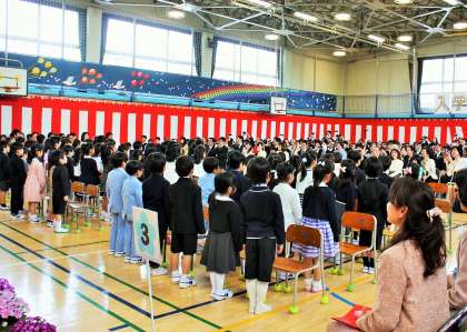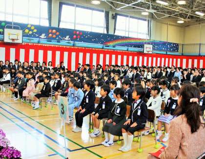 世田谷100景に選定されている百年桜の花びらが舞う中、入学式が行われました。1年生は、とってもお行儀がよく、話を聞くのが上手でした。また、「起立」や「着席」の号令に合わせてさっと行動できるのが立派でした。明日から、毎日元気に登校してください。楽しみに待っています!