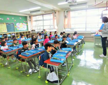 担任の先生からの呼名では、一人一人が大きな声ではっきりとした返事をしていました。お道具箱の使い方も学習しました。
