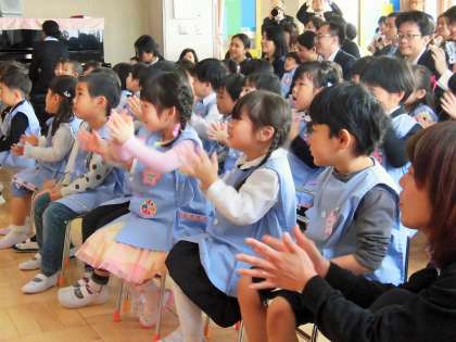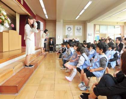 今日は砧幼稚園の入園式です。とってもかわいらしい子どもたちと会えるのを楽しみにしていました。私(園長)の話、担任紹介、教職員紹介、来賓祝辞、そして担任の先生と一緒に、手遊びなどをして楽しみました。ご入園おめでとうございます。