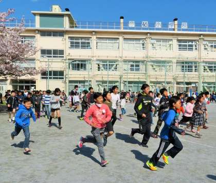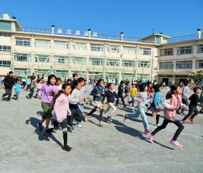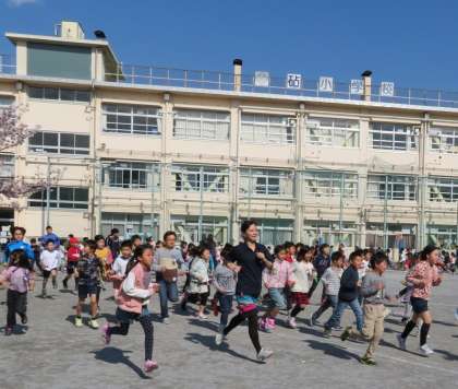 砧小学校では、始業前の朝遊び・朝ランニングに毎日取り組んでいます。音楽に合わせてリズムよく走っています。私も一緒に走っていますが、「校長先生、今日は7周走った!」など、何人もの子どもが報告に来ます。中には11周も走った子がいました。先生たちも一緒に走っていますので子どもたちも嬉しそうです。朝遊び・朝ランをして、今日も元気に1日をスタートします!
