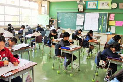 小学校は、4教科(国語・社会・算数・理科)での確認テストで、中学校は、1年生が4教科(国語・社会・数学・理科)、2年生以上は英語が加わり5教科でのテストを実施しました。