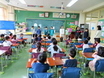 クイズをしてお別れの時間が来てしまいました。きちんとご挨拶をしてお別れです。このように6年生が関わることによって、1年生が初めての小学校生活の不安を、少しでも和らげられればと思っています。