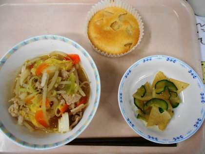 <みそラーメン>は、子どもたちに大人気のメニューの一つです。教室をまわっていると、「今日のラーメン、とてもおいしいです。今日は、とってもいい日です!」と話してくれた子がいました。気温があがり、暑い一日になりましたが、みんなもりもり食べていました。とても嬉しく思います。