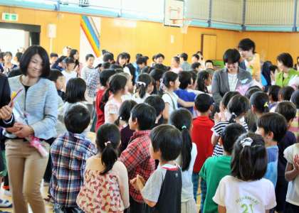 寂しくも、温かい離任式でした。子どもたちは、その後も先生方を取り囲み、メッセージをたくさんいただきました。温かい心の交流があった離任式の一日でした。