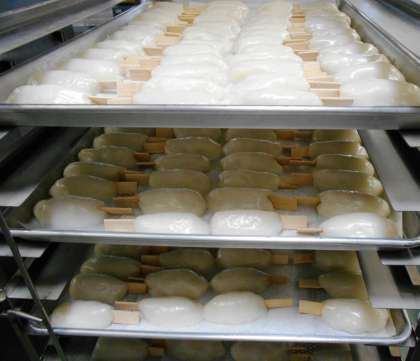 今日の給食は、開校記念日お祝いメニューです。5月8日は、砧小学校の開校記念日です。今日は、開校記念日集会もありましたので、<お祝いだんご>を作りました。