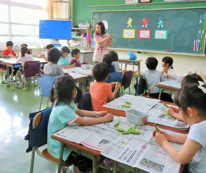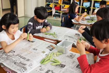 5/9 グリーンピースのさやむき体験−1