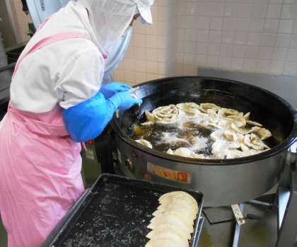 今日の給食の主菜は、子どもたちに人気の<ジャンボぎょうざ>です。教室をまわっていると「ジャンボぎょうざがおいしかったです。」と話してくれた子がたくさんいました。とても嬉しく思います。