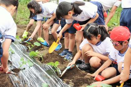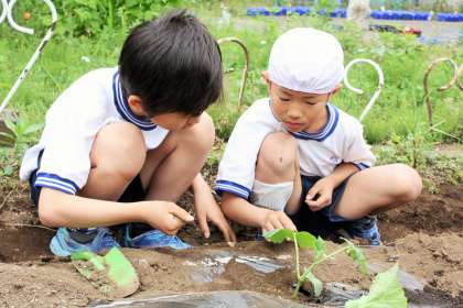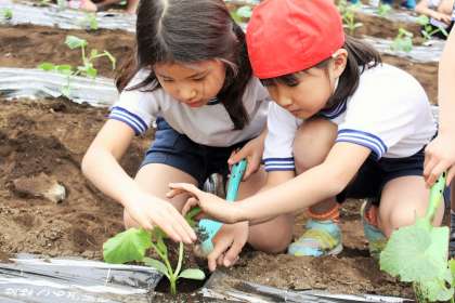これから、毎日の水やりが始まります。たくさんの野菜が実ることを楽しみにしながら、子どもたちが協力して、野菜を育てていきます。