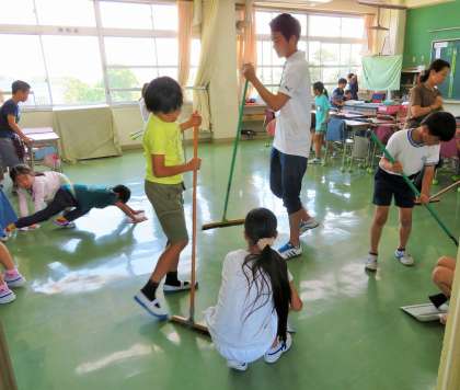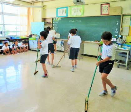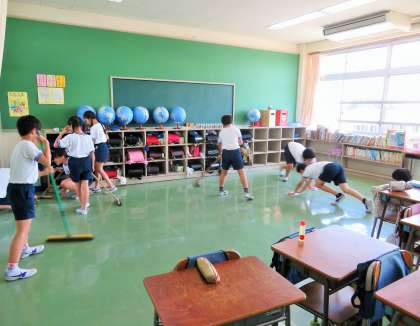 おしゃべりをしないと、お掃除はあっという間に終わります。低学年も、無駄なおしゃべりをしないで、真剣にお掃除をしていました。