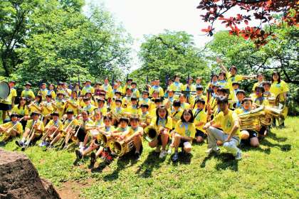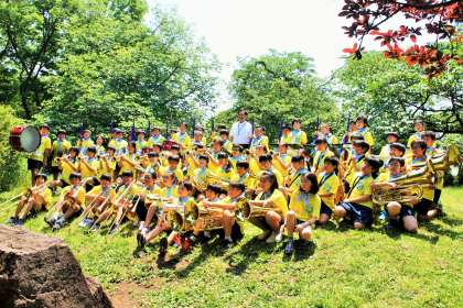 今日は「砧小学校6年生鼓笛隊」がデビューしました。世田谷区立総合運動場噴水前広場で行われた砧緑化まつりで、6年生として存在感のある演奏をしてきました。まずは、記念写真の撮影です。