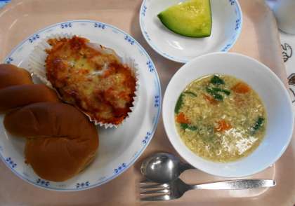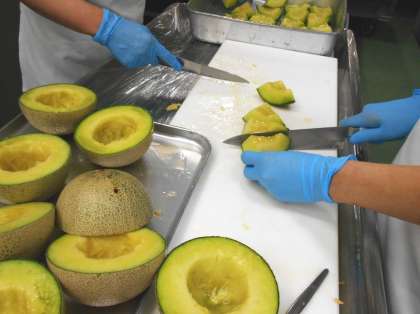 今日のくだものは、熊本産のアンデスメロンです。メロンには、体の疲れをとってくれる栄養素が含まれています。運動会の練習をがんばっている子どもたちに、ぜひ食べてもらいたいくだものです。