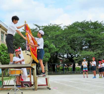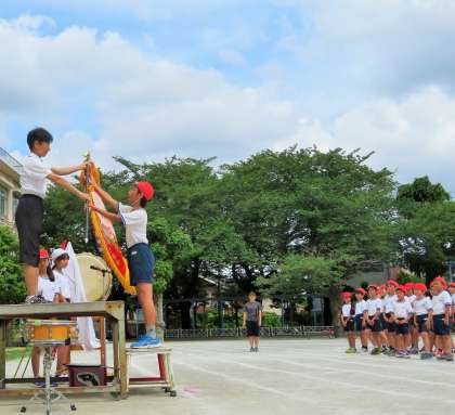 今日は、運動会全体練習3日目、最終回です。閉会式、入場行進、座席の確認、午後の応援合戦の練習をしました。