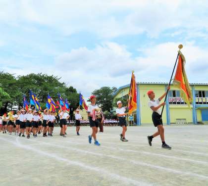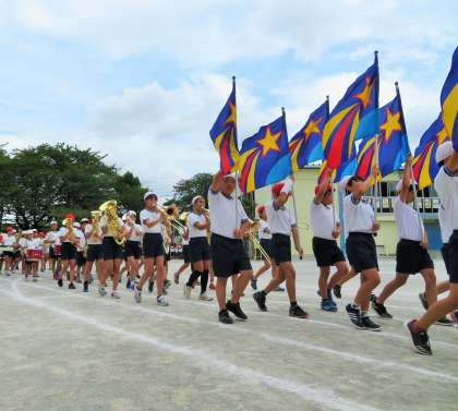 入場行進は6年生の鼓笛が先頭です。