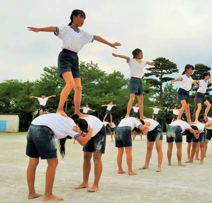 どの技も、がまん・協力・思いやり、そして、一人一人の気持ちが一つにならなければできないものばかりです。私たち教師も真剣です。