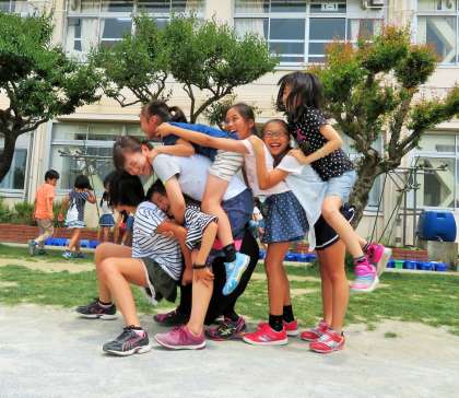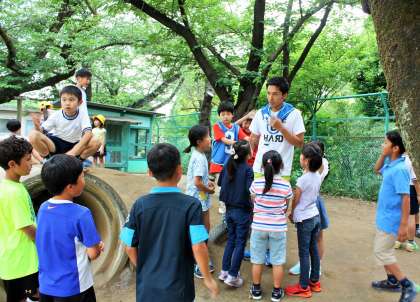 休み時間は先生と一緒の「共遊び」です。先生も一緒になって遊びます。これからも砧小学校の特色の一つとして、「教師は常に子どもと共にある!」という考えをもちながら行動していきます。