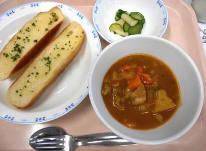 今日の給食の主食は、<ガーリックトースト>です。砧小の給食の中で、人気があるメニューの一つです。前回「ガーリックトーストは、どうやって作るのですか?」と聞いてきてくれた子がいたので、6月の給食だよりにレシピをのせました。簡単なので、ぜひご家庭でも作ってみてください。